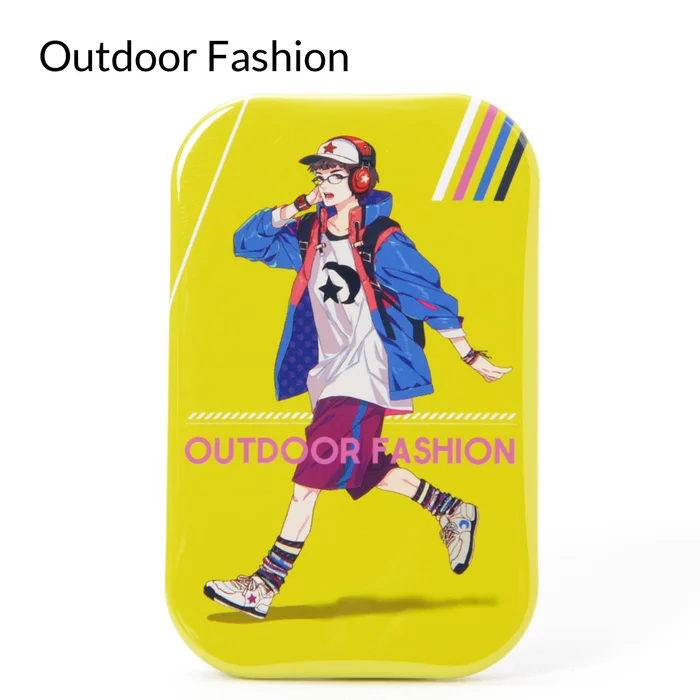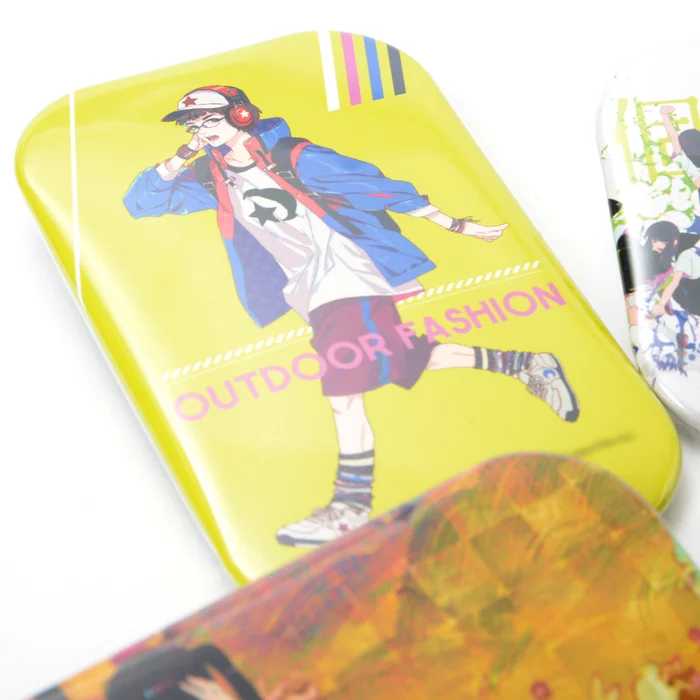 Akiakane, a talented Japanese female illustrator and utaite, drew the vibrant artwork that has been transformed into these sturdy, high-quality 1.6” x 2.8” tin badges! The collection includes “Kosei wo Himeta Kimitachi e,” “Usagi no Otoori,” “Saru,” and “Outdoor Fashion.”