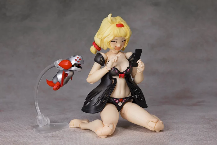 Introducing a plastic model kit of original character Sophia by popular illustrator saitom in a relaxed look for lounging around! Produced by Alphamax and sculpted by Masaki Apsy, Sophia measures 6.3" tall once assembled and comes with everything she needs for a relaxing day at home, including two cans of chuhai, a bag of chips, her smartphone, a table and cushion, and even her mini dragon friend. In addition to a variety of interchangeable face and hand parts, she also comes with an optional bangs part, and she can be displayed without her nightie for a slightly different look. Let her enjoy a day off in your collection!