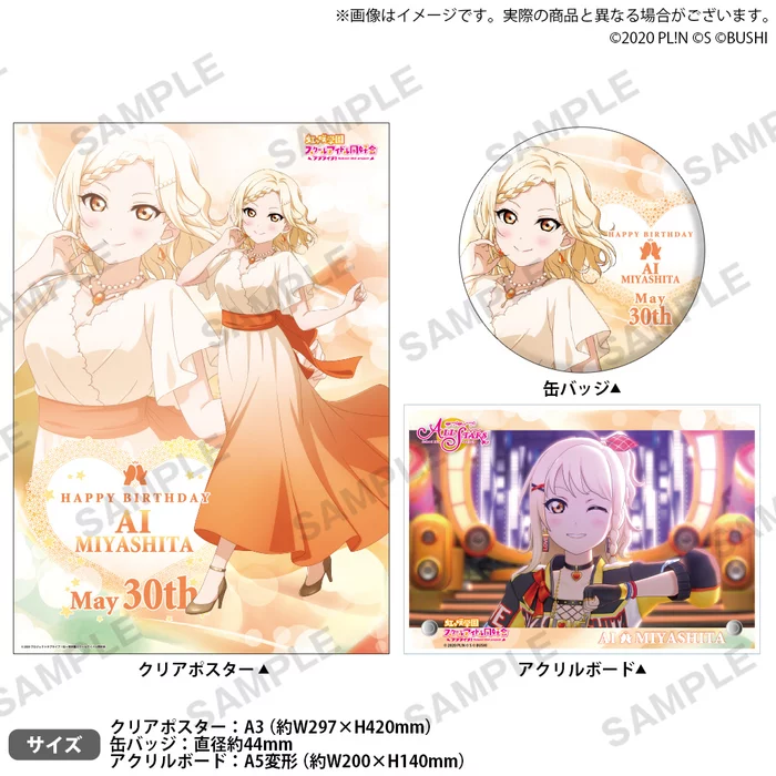 It’s time to celebrate Ai Miyashita’s birthday, and Bandai Namco Arts has you covered with this special birthday set dedicated to the Nijigaku idol! From the series’ official store, Nijigasaki High School Store, the set includes an acrylic art board featuring a scene of Ai from the Love Live! Nijigasaki High School Idol Club anime plus a collectible pin badge and clear poster each featuring brand new artwork of the friendly gyaru idol made just for the occasion!