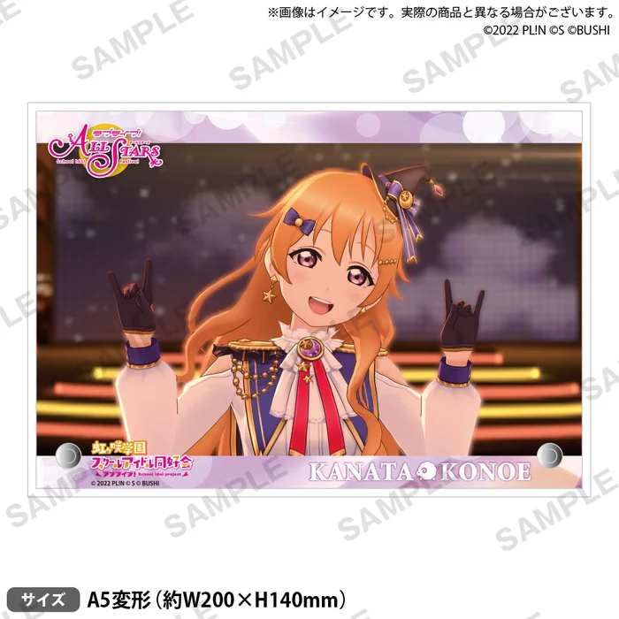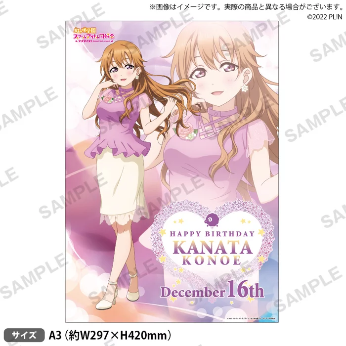 Now Love Live! Nijigasaki High School Idol Club fans can celebrate Nijigaku idol Kanata Konoe’s birthday with this celebratory set! Part of the Nijigasaki High School Store Birthday Present Project from the series’ official store, the Nijigasaki High School Store, the set includes a collectible pin badge and poster featuring new artwork created just for her birthday of Kanata looking lovely in a stylish blouse and skirt, as well as an acrylic board featuring a MV scene from Love Live! School Idol Festival All Stars voted on by fans that shows her dressed in a stage costume in a playful pose!