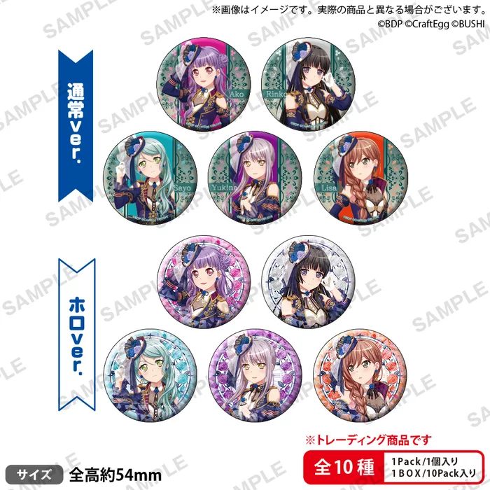 The BanG Dream! Girls Band Party! “Episode of Roselia” solo concert held on May 21 and 22, 2022 at Fuji-Q Highland Conifer Forest may be over, but the excitement can continue thanks to these collectible, tradable pin badges from Bushiroad Creative! The 2.4" x 3.1" badges feature new artwork of Yukina, Sayo, Ako, Rinko, and Lisa in lovely stage outfits, available in both a normal and holographic finish. Collect your favorite and display them on your bag!