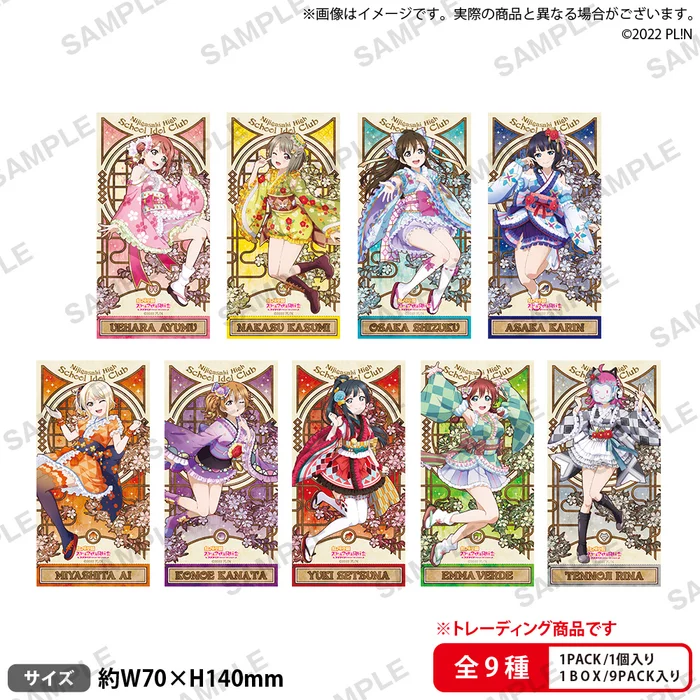 Bushiroad Creative is bringing Love Live! Nijigasaki High School Idol Club fans another way to enjoy the bright smiling faces of their favorite Nijigaku girls with these collectible ticket-style stickers! Each measures 5.5" x 2.8" and features a different girl dressed in a lovely, bright kimono and giving a beaming smile to match. The box set even comes with all nine of the girls so you can easily collect them all!