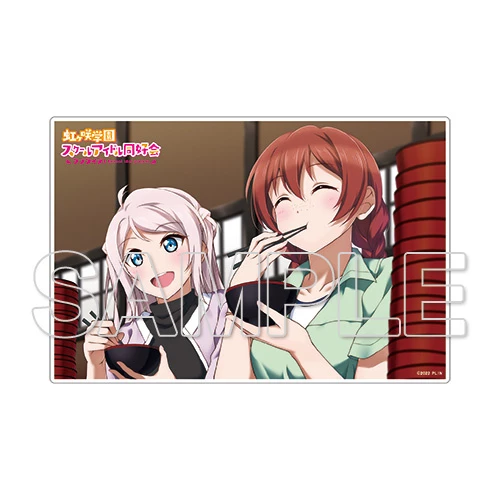 From Kadokawa comes a collectible Love Live! Nijigasaki High School Idol Club mini acrylic plate featuring Nijigaku girls Emma Verde and Lanzhu Zhong! The 4.7" x 3.1" plate features vibrant artwork by illustrator Shimai of the two enjoying a tasty meal together and comes with a stand to easily display it in your collection.