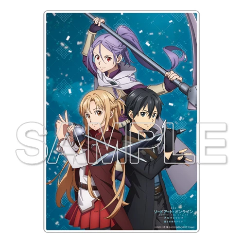 Now you can enjoy the company of your favorite SAO characters while you work or study with this Sword Art Online Progressive: Aria of a Starless acrylic stand from Kadokawa. Measuring 7.9" x 5.5", it features vibrant artwork of Kirito, Asuna, and Mito in cool poses and is sure to bring some charm to your desk.