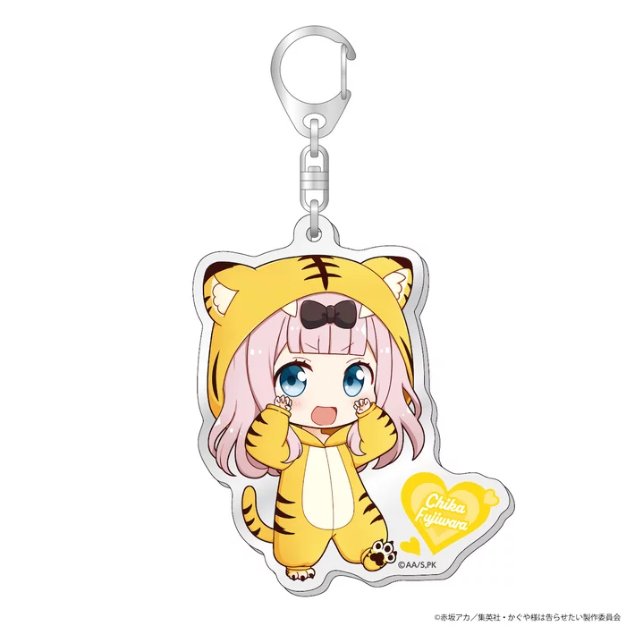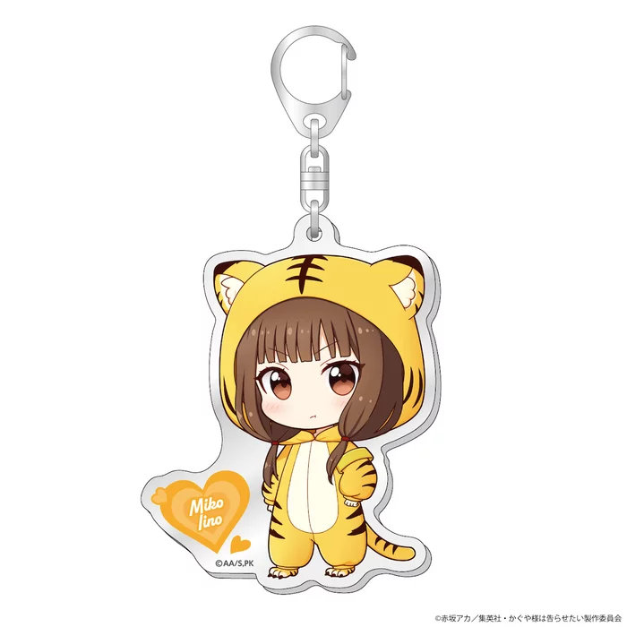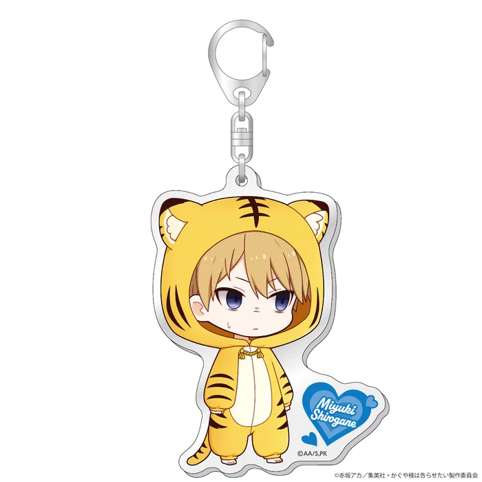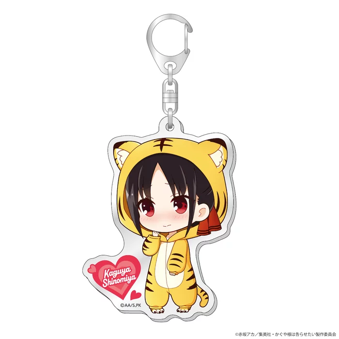 This time, acrylic keychains are available featuring main characters Kaguya Shinomiya, Miyuki Shirogane, and other Shuchi'in Academy students as chibis dressed in tiger kigurumis. Enjoy hanging your favorite tiger on your bag!