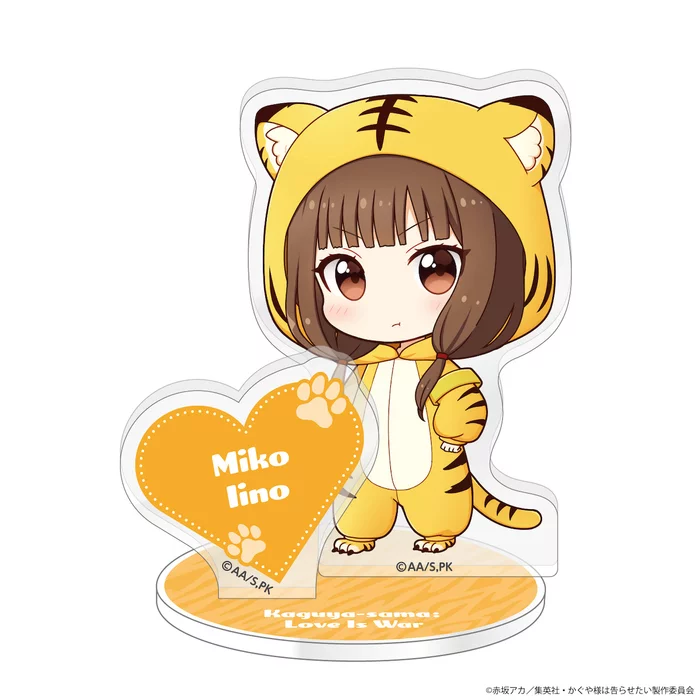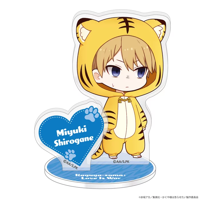 This time, acrylic stands are available featuring main characters Kaguya Shinomiya, Miyuki Shirogane, and other Shuchi'in Academy students as chibis dressed in tiger kigurumis. These lovely acrylic stands each feature a print of one of the six main characters. You can easily decorate your desk, shelf, or anywhere with your favorite tiger!