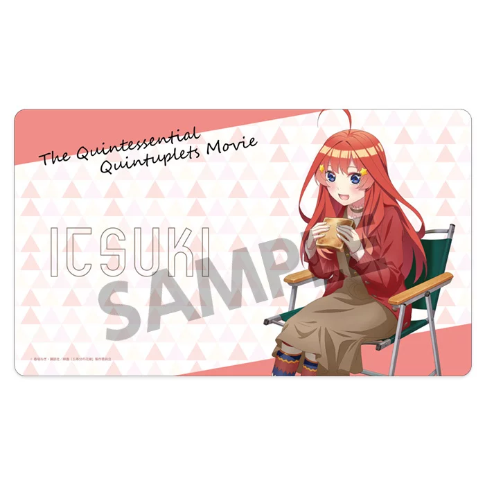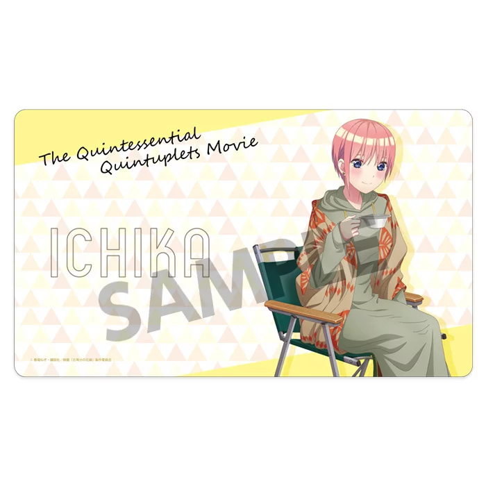 Enjoy the charm of your favorite Nakano sister as part of your decor with these rubber mats celebrating The Quintessential Quintuplets the Movie! Each mat measures 13.8" x 23.6", has a no-slip backing, and features brand new art of either Ichika, Nino, Miku, Yotsuba, or Itsuki enjoying some camping vibes. With their many uses, they’re ideal for playing card games on, using as a mouse pad, or displaying as an accent piece in your collection!